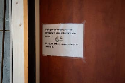 Als we aan de buitenkant langs een aantal ramen lopen, zien we een nieuwsgierige bewoner naar ons kijken. Jan zegt: ‘We zien dat sommige bewoners wel van een beetje reuring houden en nieuwsgierig zijn naar wat we hier allemaal aan het doen zijn. We zwaaien altijd even naar elkaar als we langs iemands woning lopen. Ook sta ik altijd open voor een praatje.’