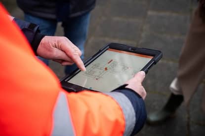 Rolf laat op zijn tablet zien wat de planning is en vertelt: ‘De eerste fase is nu begonnen, van in totaal vier fases. Elke fase heeft een eigen startdatum en een deadline. We hebben de werkzaamheden die bij elkaar liggen in fases onderverdeeld, zodat we de mensen hier zo weinig mogelijk storen. In november moet alles klaar zijn. Tijdens de volgende fases moeten in totaal acht bewoners uit hun appartementen, omdat we dan die ruimtes moeten versterken. We zorgen ervoor dat deze bewoners in tijdelijke appartementen gewoon hier in Alegunda Ilberi kunnen blijven wonen. Ook weer om voor zo weinig mogelijk overlast voor deze mensen te zorgen.’